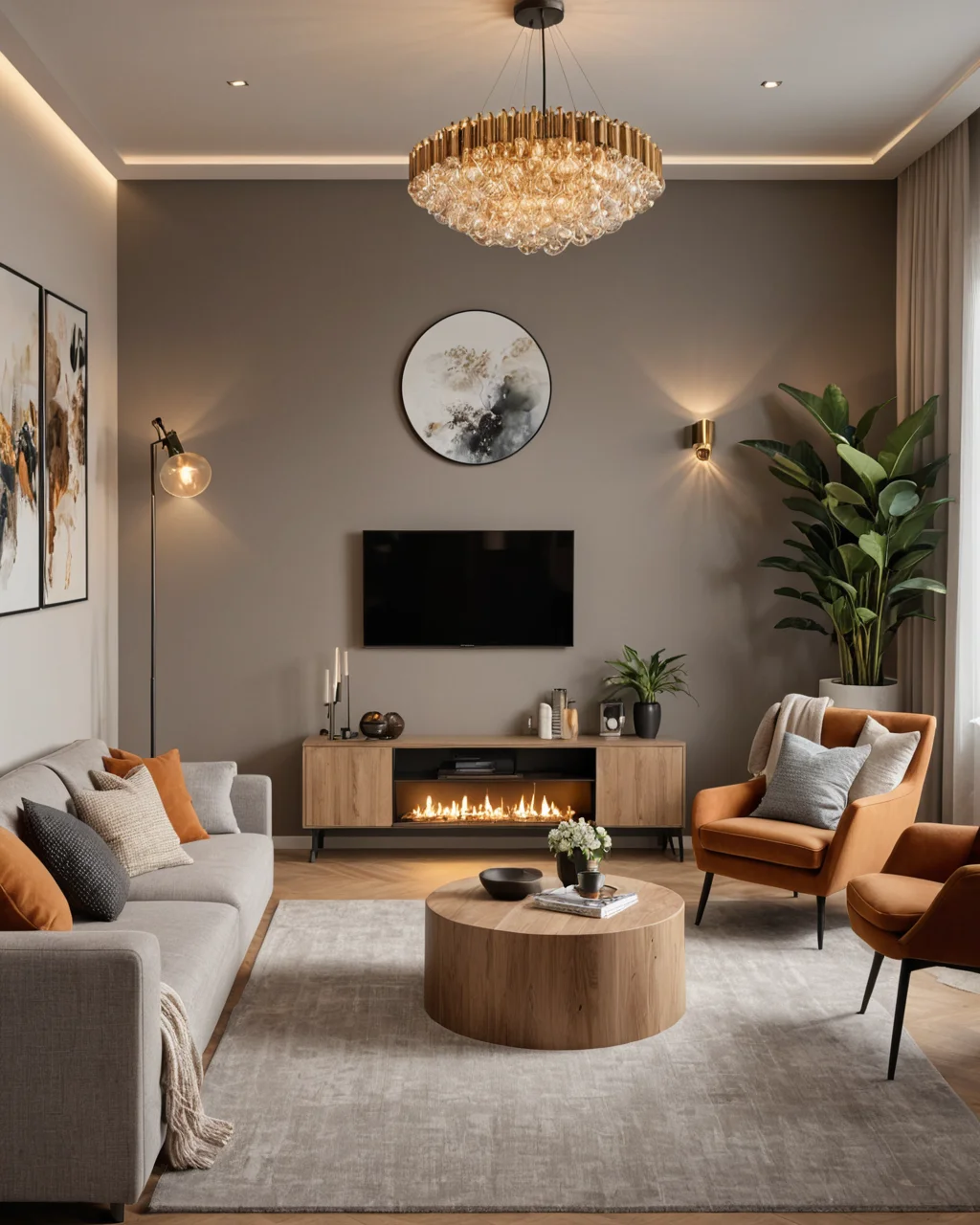 Типы освещения и их влияние на атмосферу — это немаловажный аспект в оформлении гостиной. Сочетание общего, акцентного и настенного освещения создаст многослойный световой сценарий, который сделает пространство более уютным и комфортным. Например, общая люстра может обеспечить равномерное освещение, в то время как настольные лампы добавят мягкий свет для чтения или отдыха.